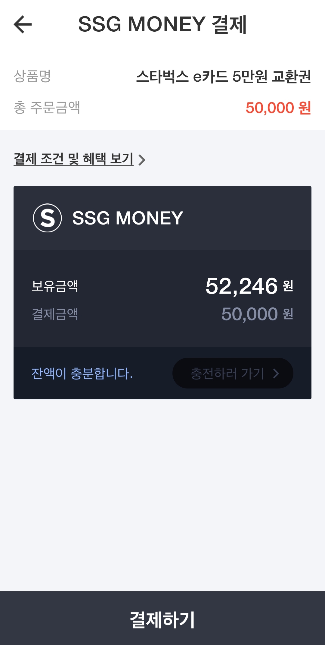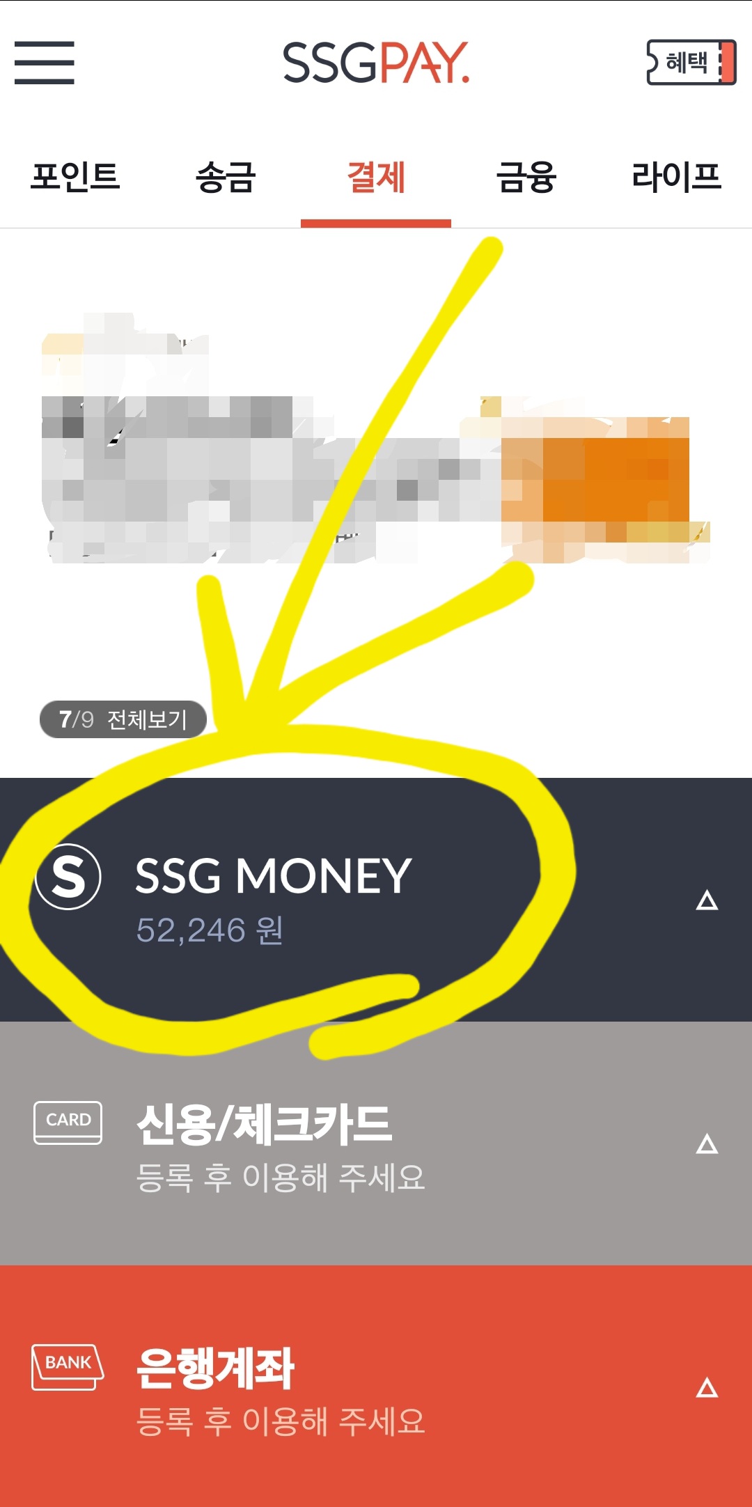 SSG MONEY 란에 잔액이 보이시나요? 잔액을 확인해 주세요.