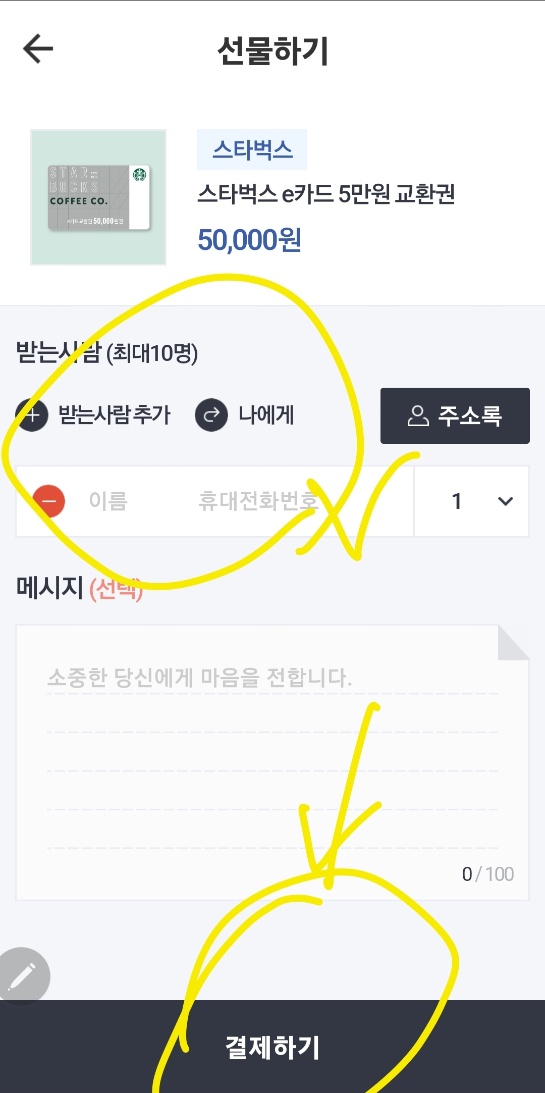스타벅스 앱에서 기프트카드 등록하기